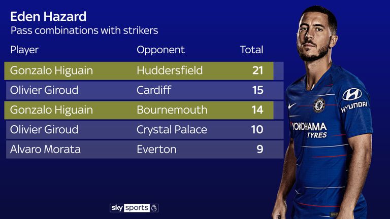 passes to Hazard at Bournemouth with nine against Huddersfield. Again, that